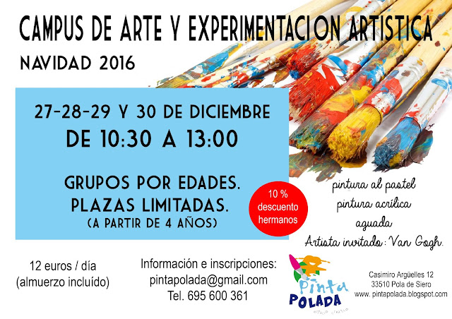 Un Campus dirigido a niños y jóvenes, con grupos por edades, donde poder desarrollar sus inquietudes artísticas, experimentar con diferentes técnicas y materiales y conocer la obra de artistas invitados, como Van Gogh. Una oportunidad única para aprender de manera diferente y divertida!!