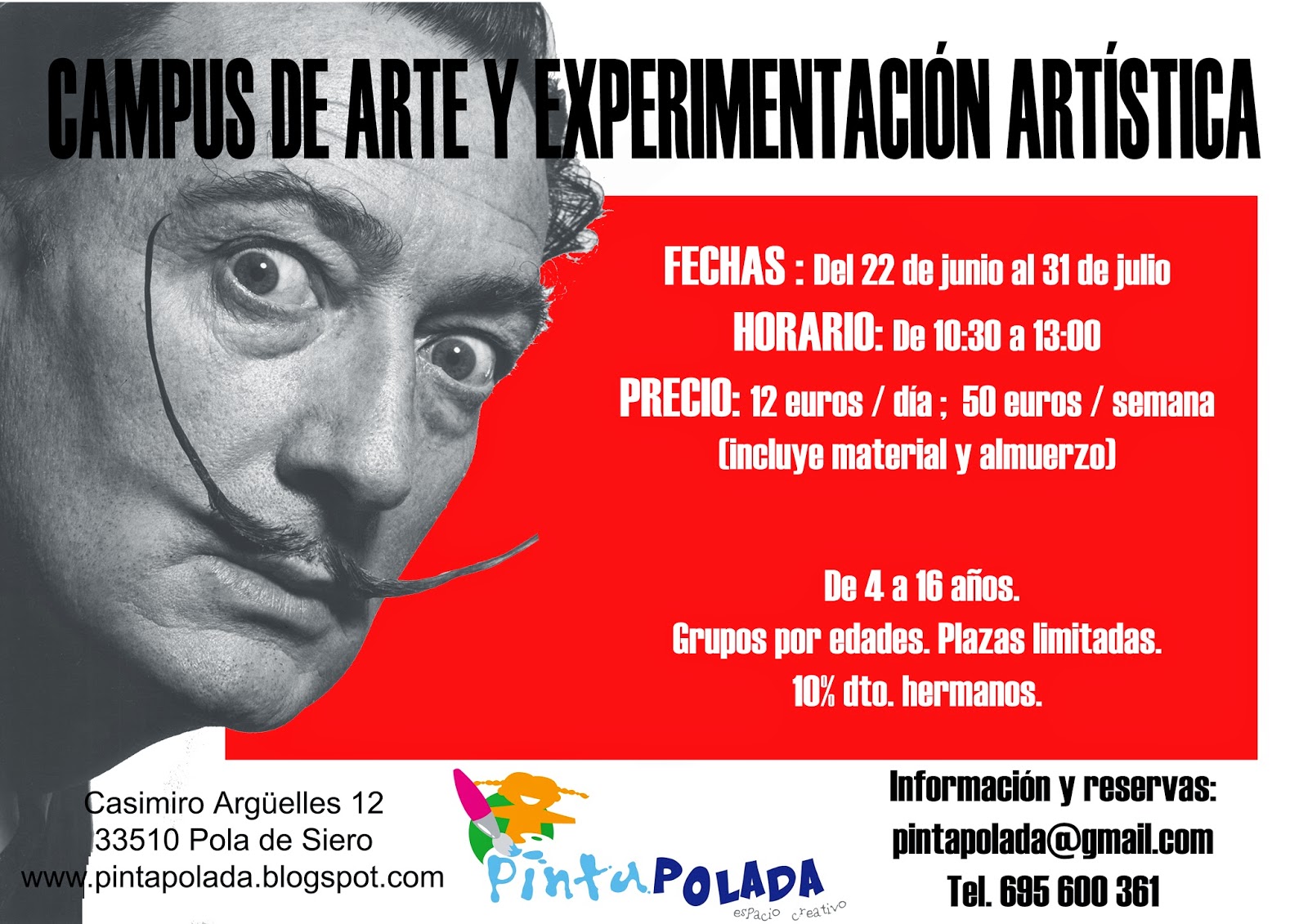 El fin de curso está a la vuelta de la esquina, y un año más, Pinta Polada os ofrece una alternativa diferente para disfrutar de las mañanas del verano: Campus de arte y experimentación artística, Verano 2015!!